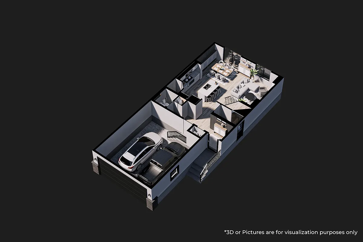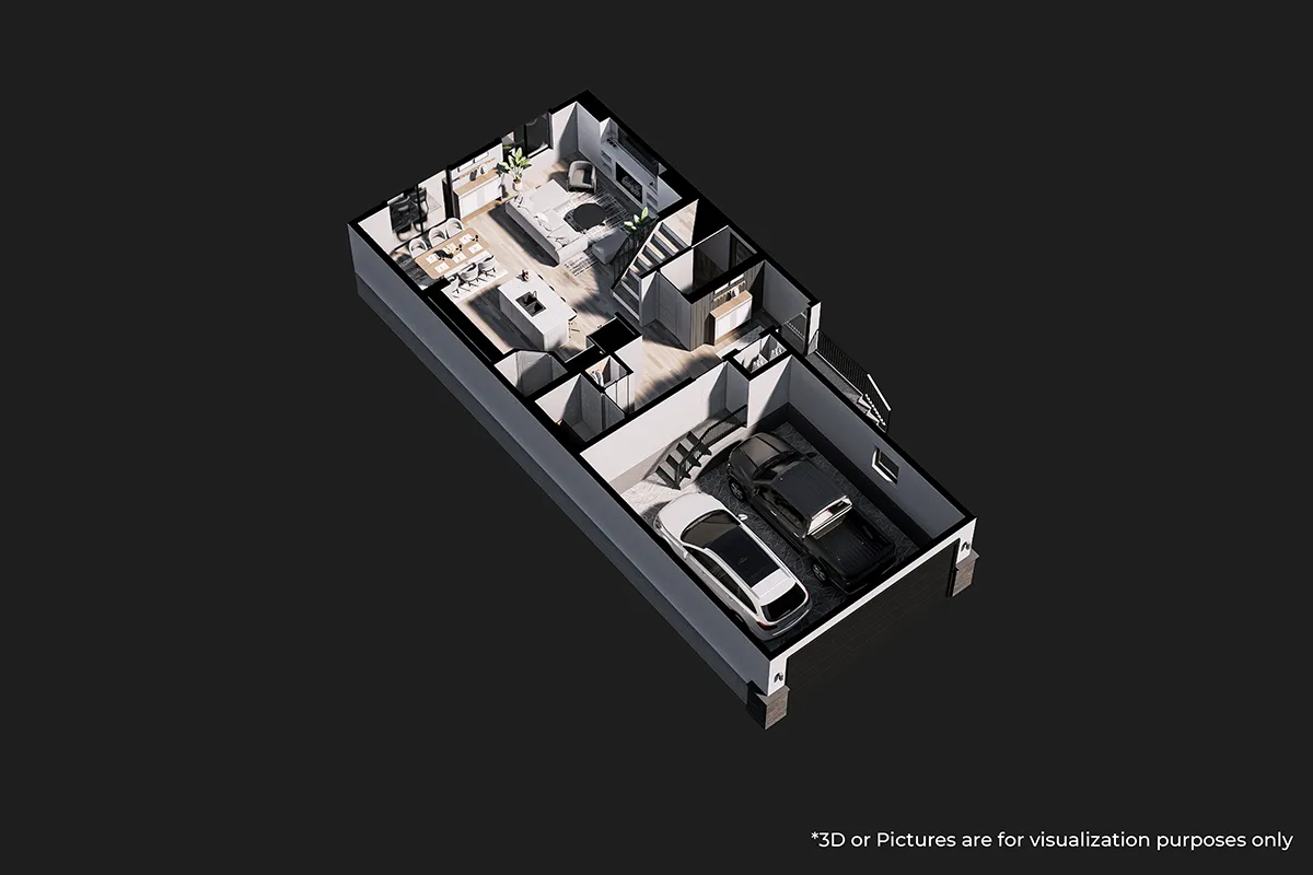 The Valencia B is a beautifully designed two story home offering nearly 1,535 square feet of comfortable living space. It features three spacious bedrooms, two full bathrooms, and a convenient powder room, making it ideal for families. The main floor includes impressive nine foot ceilings, modern Decora switches and plugs, and energy efficient LED lighting that bring together classic style and modern comfort. An optional fireplace can be added to create a warm and cozy atmosphere. Completing the home is a spacious 19’ x 24’ garage, providing added convenience and functionality.