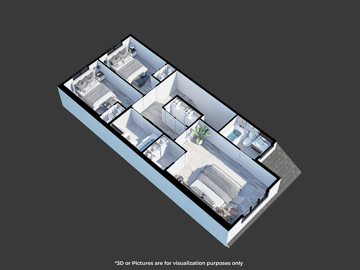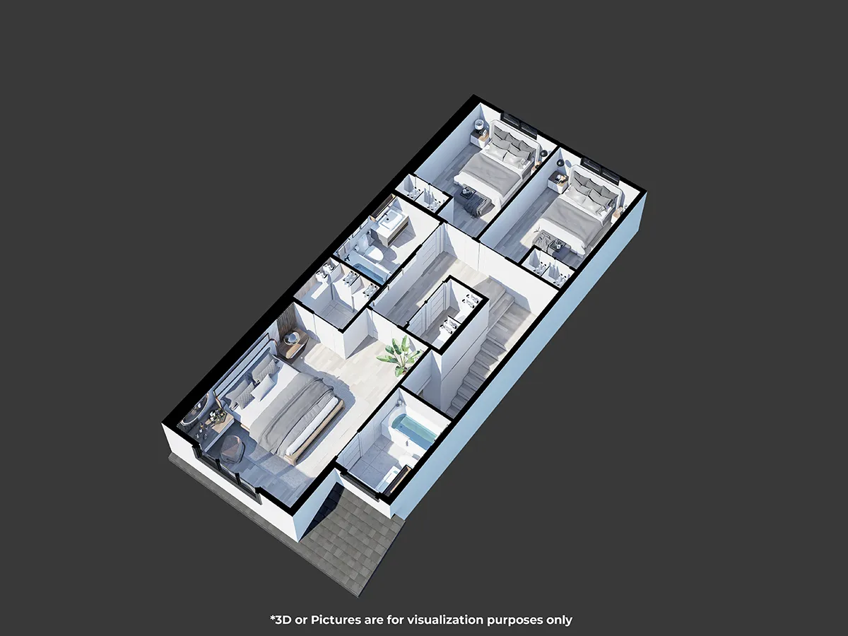 The Vistano beautifully blends classic farmhouse charm with contemporary comfort, offering an inviting five-unit design ideal for modern lifestyles. Each home features signature farmhouse elements such as board-and-batten siding, gabled rooflines, and welcoming front porches, creating an elegant yet approachable street presence.
